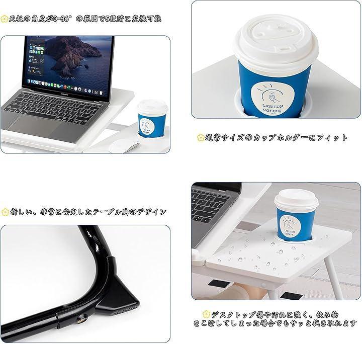 「角度調整可能」天板の角度が0°から36°の範囲で5段階に変換可能ノートパソコン、タブレット、モバイル、雑誌視聴を調整できます。