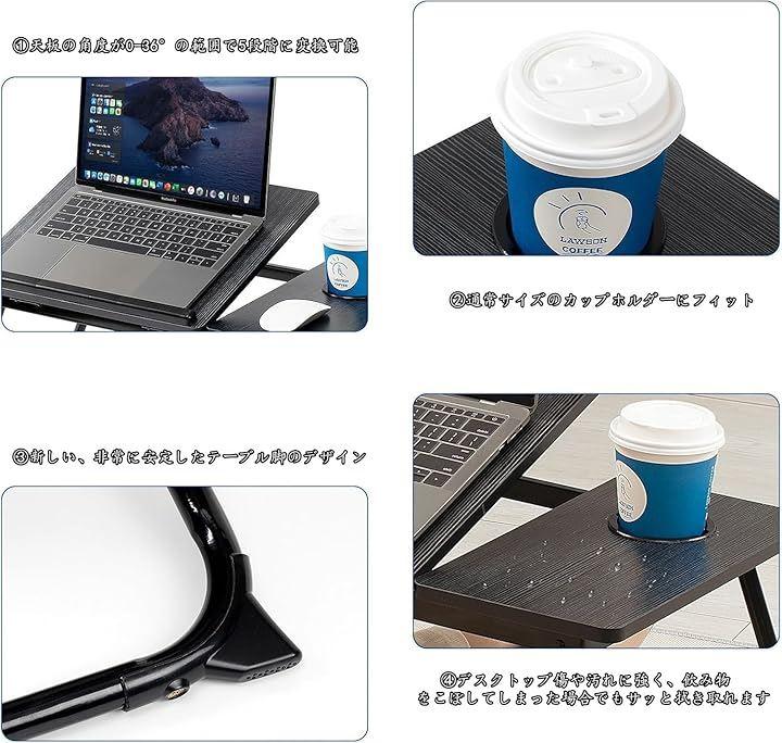 「角度調整可能」天板の角度が0°から36°の範囲で5段階に変換可能ノートパソコン、タブレット、モバイル、雑誌視聴を調整できます。