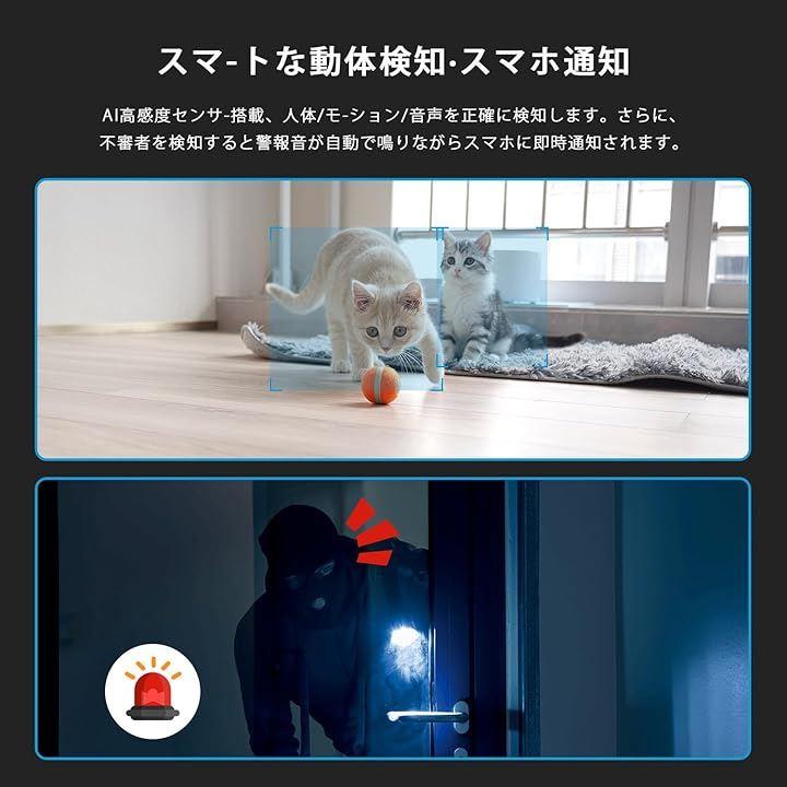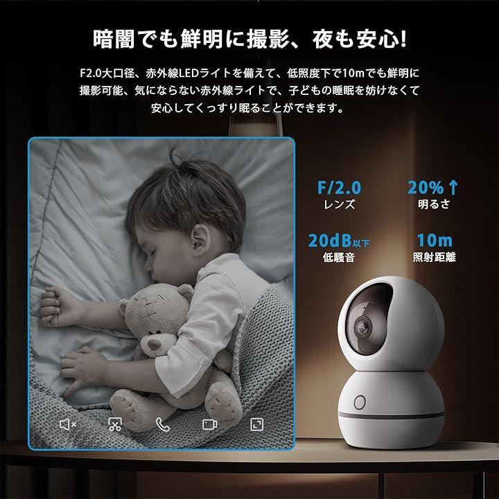 「暗視撮影&動体検知&自動追尾・自動復帰」:この室内監視カメラは850nm赤外線LEDを採用し、夜間や暗所での視認距離は最大10m、クリアな白黒映像を実現。
