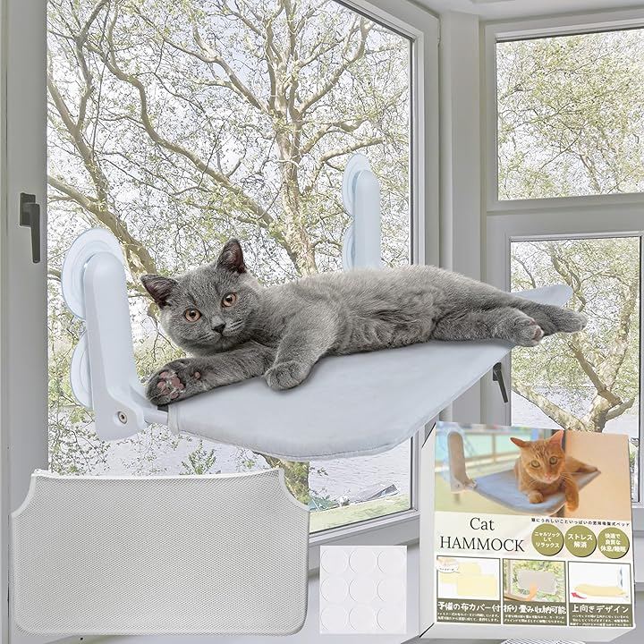 「猫にうれしいこといっぱいのハンモック」 高いところから景色を眺めることが大好きなネコちゃんのために設計した、窓用のハンモックです。