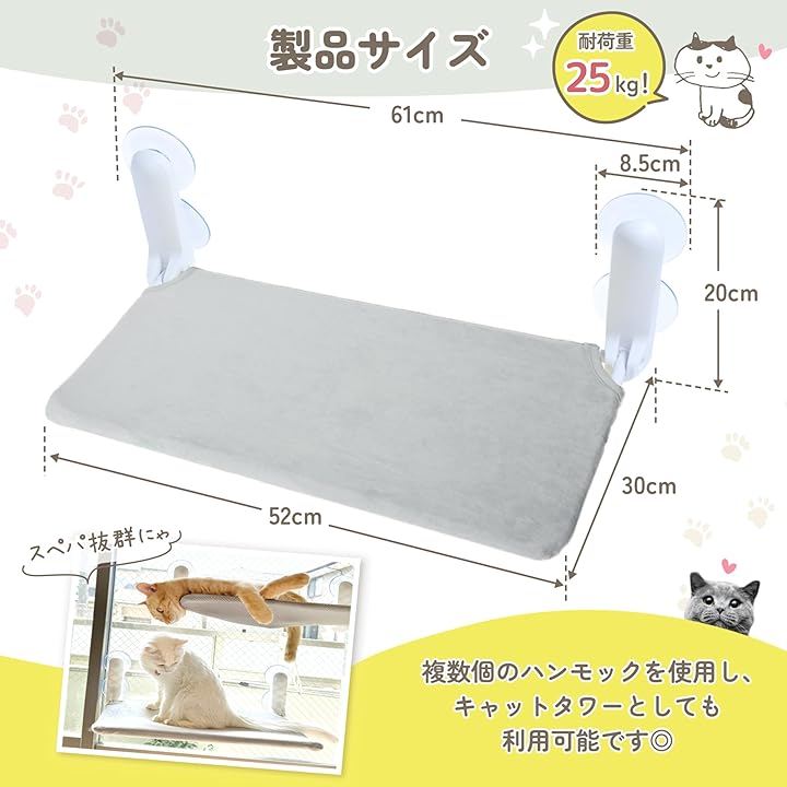 猫タワーと違い、窓に貼り付けることができるので、場所を選ばず設置可能です。