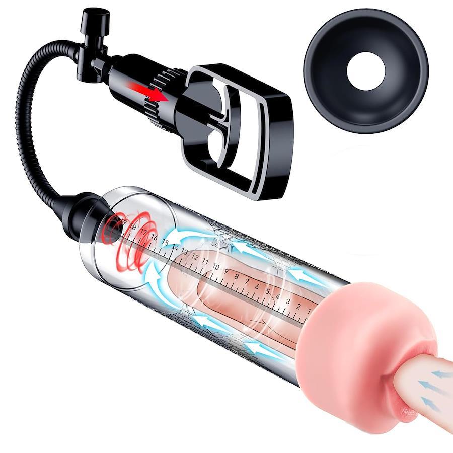 このペニスポンプは手動ペニスポンプとフェラホールのセットです。透明カップには20cmメモリがあり、サイズ変化を確認可能。安全素材で快適に使用でき、滑り止め加工で操作も簡単。プライバシー梱包で安心。