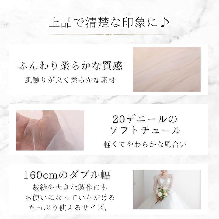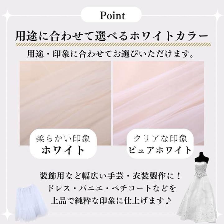肌あたりが優しく、ウェディングベール・ドレス・ペチコート・装飾用など幅広い手芸・衣装製作に対応。