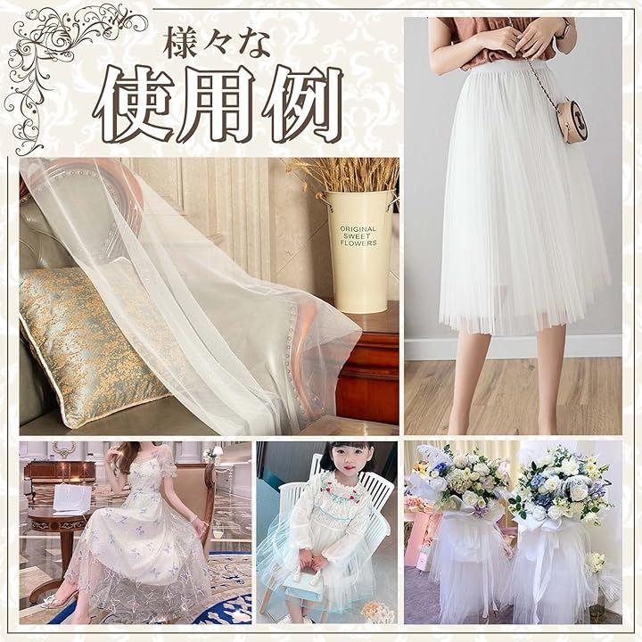 目が細かく肌触りの良い20D(デニール)のホワイトチュールです。