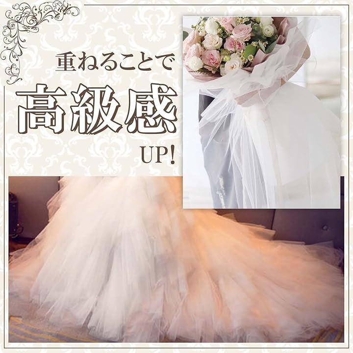 エレガントかつ軽やかな素材とチュールならではの透け感が美しいため、ベールや帽子など、異なる素材と重ねることで使い方が広がる素材です。