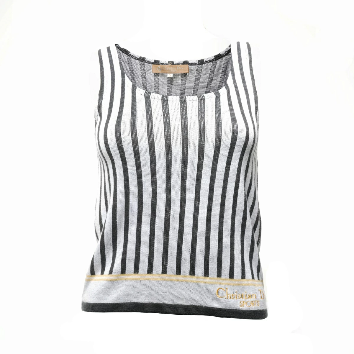 [21% OFF All Items! Until 11/2 23:59] Christian Dior Cotton Striped Tank Top with Embroidered Logo, Gray, Size: Small, WS15412 [Pre-owned]