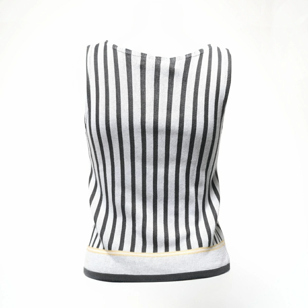 クリスチャンディオール Christian Dior Size:S コットン ストライプ 刺繍ロゴ タンクトップ グレー WS15412 【中古】