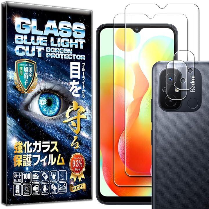 ブルーライトカットガラスフィルム2枚+クリアカメラレンズ保護ガラスフィルム2枚セット