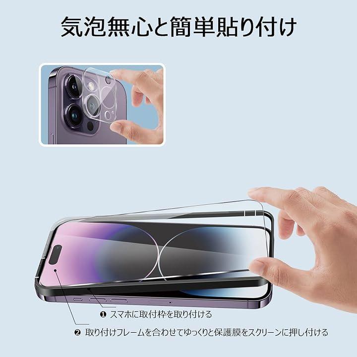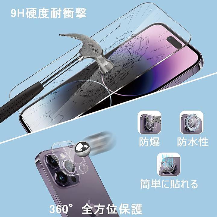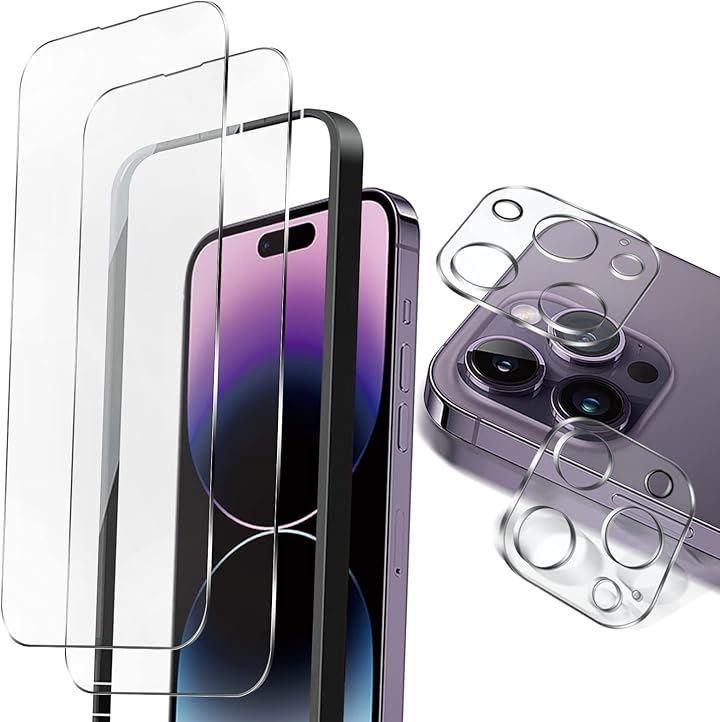 「2+2セット」 iphone 14pro ガラスフィルム 2枚+ iphone14pro カメラカバー 2枚を組み合わせて、全方位の保護を提供します。