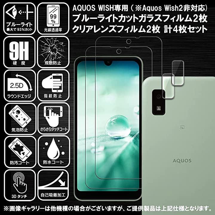 ・「対応機種」AQUOS WISH 用 「仕様」国産AGC旭硝子を使用 ブルーライトカット90%~93% 高透過 表面硬度9H 薄さ0.33mm 2.5Dラウンドエッジ加工 指紋防止 防汚コート 飛散防止処理 自動吸着 3Dタッチ感度対応。