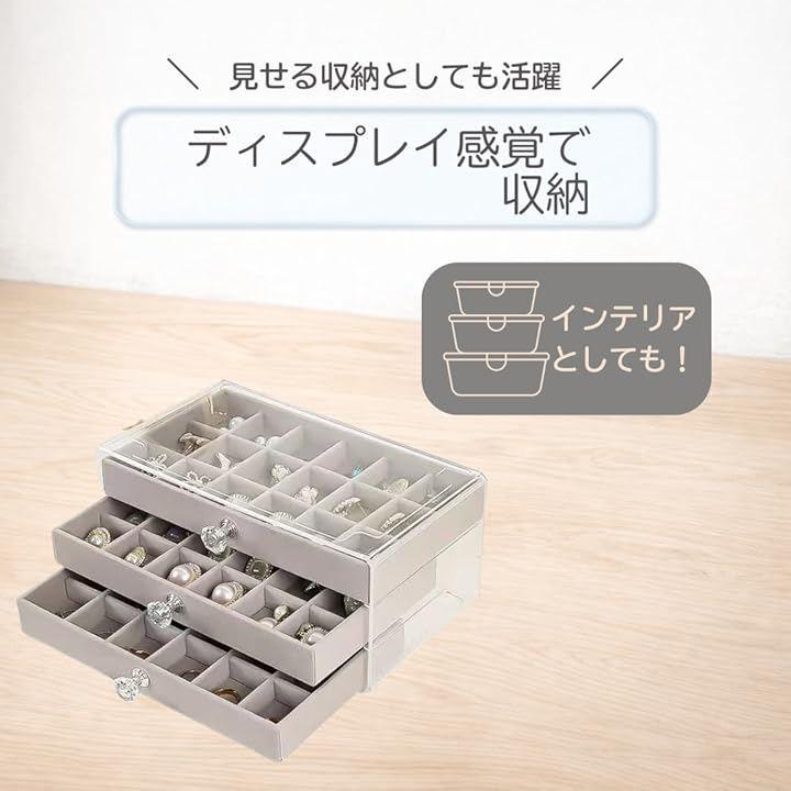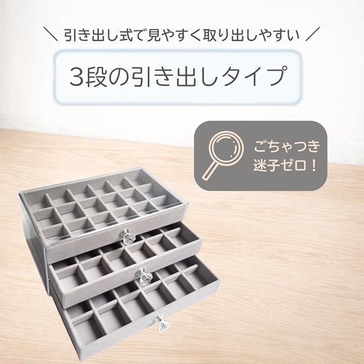 「引き出し式で見やすく取り出しやすい」3段の引き出しタイプだから、上から一目で中身を確認でき、必要なアクセサリーをすぐに取り出せる設計。