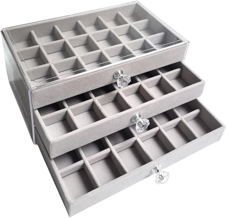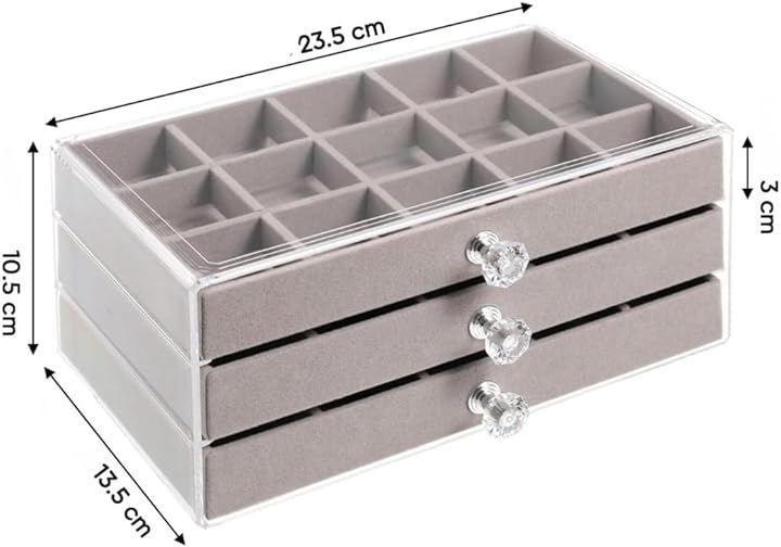 23.5x15x11cm 3-Drawer Display Case, Jewelry Box, Large Capacity, 45 Compartments, Compact Size, Display Storage, and Accessory Protection