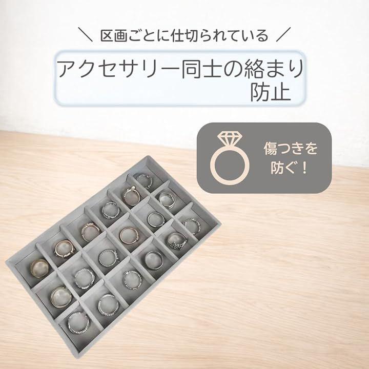 「アクセサリー同士の絡まり・傷を防止」区画ごとに仕切られているため、ネックレスの絡まりや、ピアス同士の接触による傷を防止。