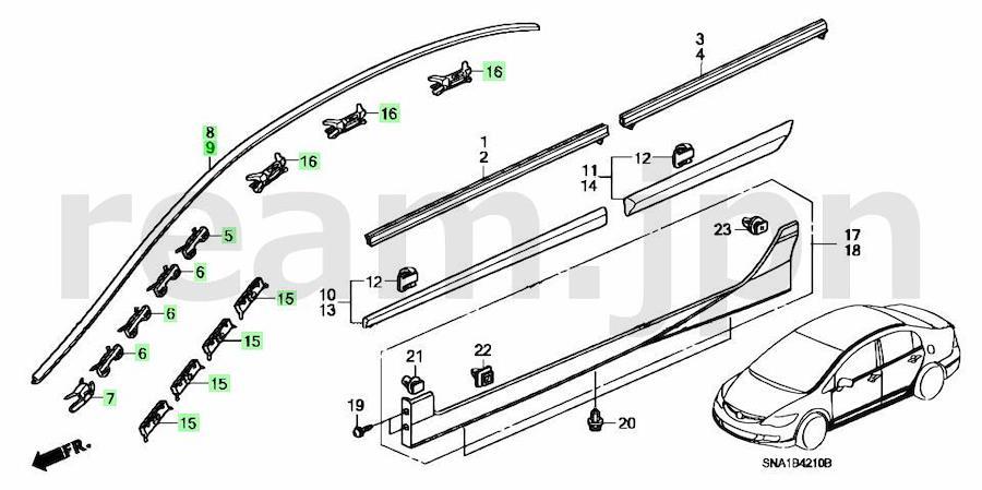 クリップ24個付 ホンダ純正 FD1 FD2 FD3 シビック ドリップサイド ルーフモール 左右 タイプR JDM FD
