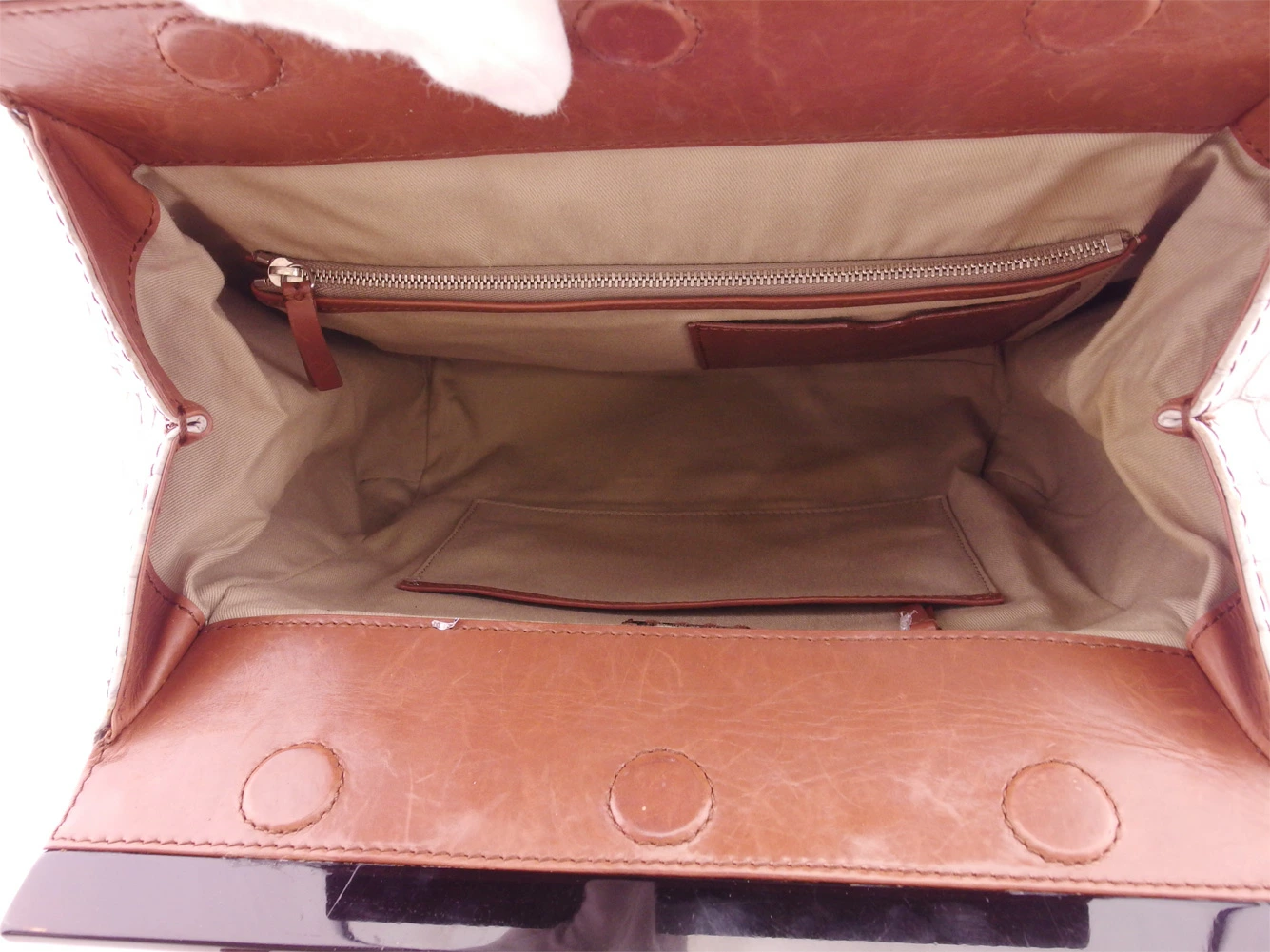 | コンディション | 全体の状態詳細:まだまだ十分にお使いいただけます。 社外リペア跡(スレ色着色)あり。その他 スレ&汚れ(内側&ポケットもあり) 傷(内側革もあり) 角スレ シミ(内側一部) コバヒビ割れ(ハンドル&底部) 金具傷 などの使用感があります。 |
