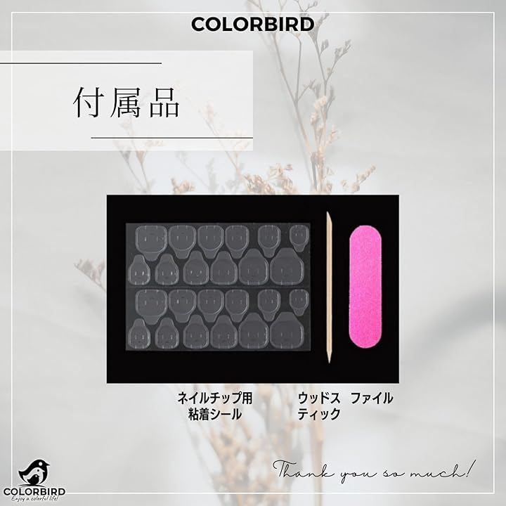 「付属品」紙箱ケース、ファイル、ウッドスティック、ネイルチップ用粘着シール