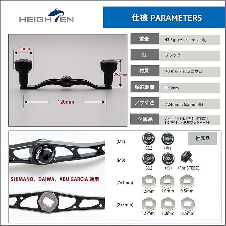 「105mm総重」38g(センターナット含む)「120mm総重」43.5g(センターナット含む)「素材」ノブ-TPE&航空アルミ、ハンドル-航空アルミ。
