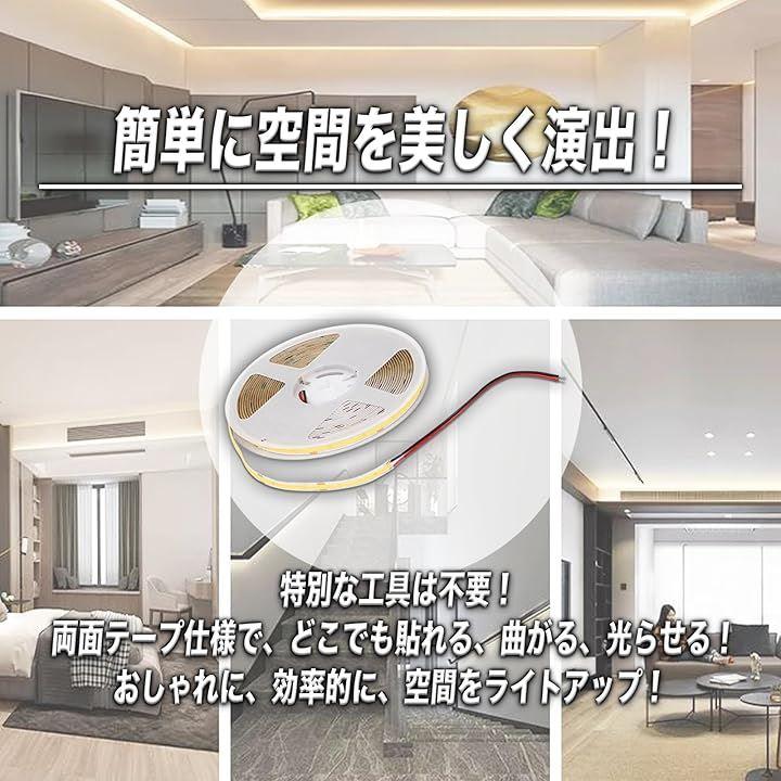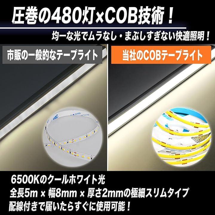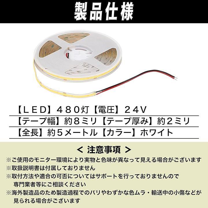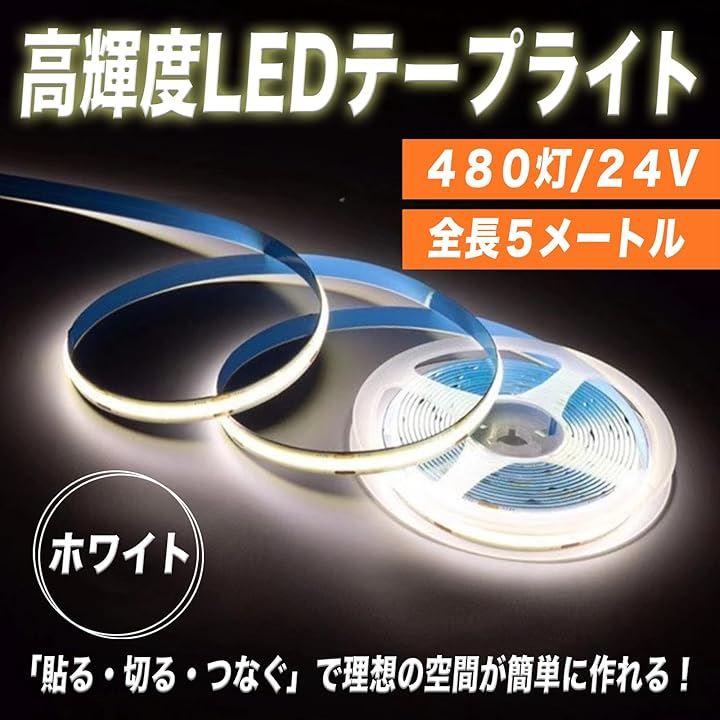 「明るさと美しさ – 480灯COB搭載の高輝度LED」本製品は480灯COBチップを搭載した「LEDテープライト 白 ホワイト 24v 5m 高輝度」モデル。
