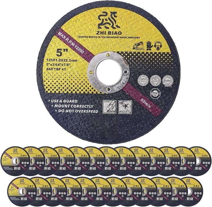 25 Disc Grinder Blades, Cutting Wheel Replacement Blades for Sanders, Metal, Iron, and Stainless Steel, 125mm Outer Diameter x 1.0mm Thick x 22mm Mounting Hole Diameter