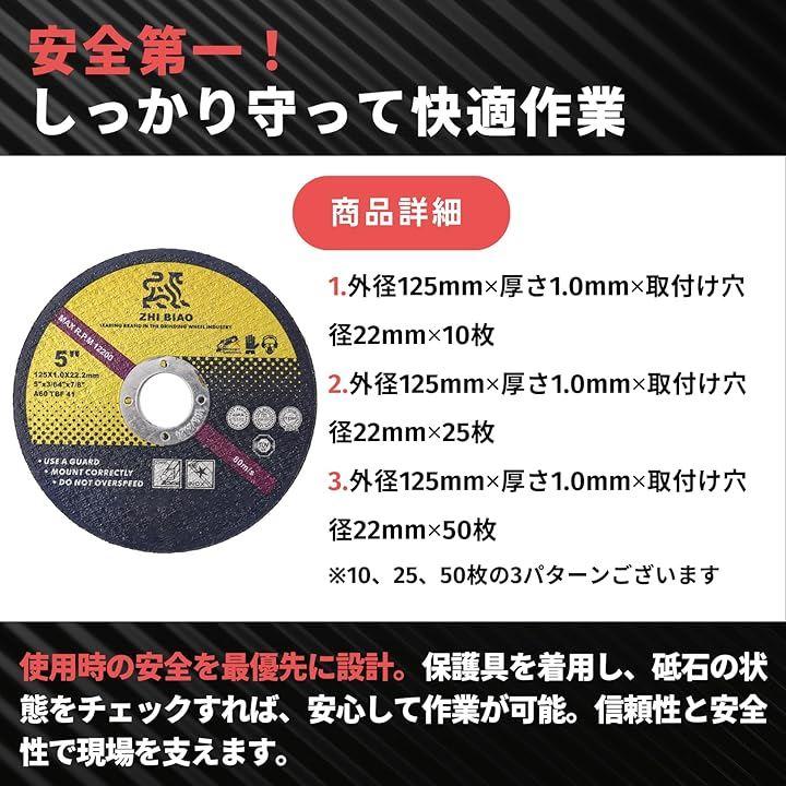 *外径x厚みx穴径(mm):125x1.0x22mm *入り数:10~50枚入 「注意事項」保護メガネ・マスクなど安全保護具を着用して正しく安全にご使用下さい。