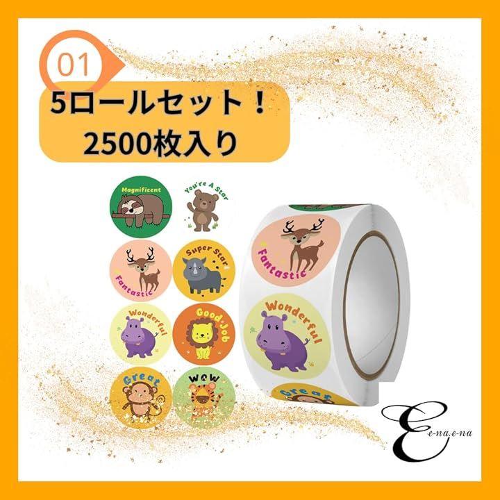 「ごほうびシール - 商品仕様」500枚/ロール 5ロール 合計2500枚 、直径25mm 、40柄