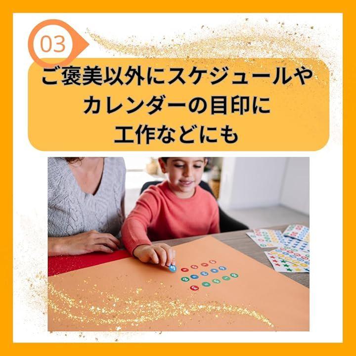 「ごほうびシール - 幅広い用途で活躍」トイレトレーニング、お手伝いをした時、宿題、歯磨きを頑張った時、食べ物の好き嫌いの克服などに使って頂けるごほうびシールです。ご褒美以外にスケジュールやカレンダーの目印に、工作にと幅広くお使いいただけます。