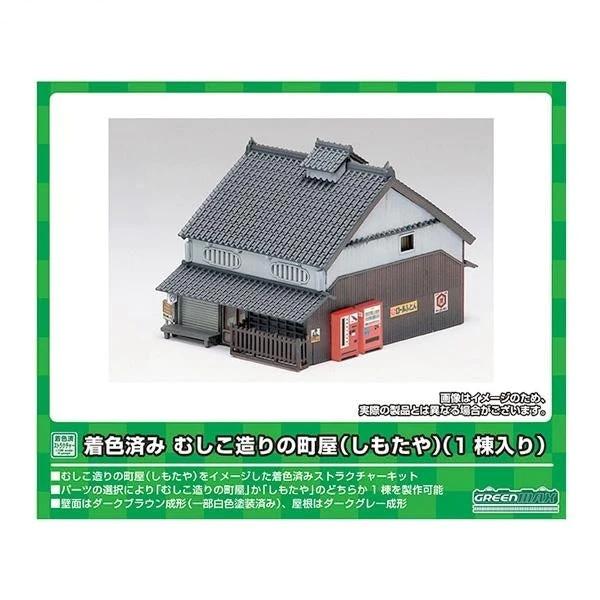 2622 グリーンマックス むしこ造りの町屋 (しもたや) (1棟入り) 着色済みストラクチャーキット Nゲージ 鉄道模型むしこ造りの町屋(しもたや)をイメージした着色済みストラクチャーパーツの選択により「むしこ造りの町屋」か「しもたや」のどちらか1棟を製作可能「むしこ造りの町屋」または「しもたや」のどちらか1棟を製作可能壁面はダークブラウン成形(一部白色塗装済み)、屋根はダークグレー成形窓ガラスは窓枠、扉が印刷済み看板、のれん、のぼり旗、ホーロー看板などはステッカーに付属縁台、犬垣、自立看板、理髪店店頭用サインポールが各1基付属(未塗装)※キットですので組み立てが必要です。※商品の仕様は一部実物と異なる場合があります。【組立完成後のサイズ】・幅56mm×奥行き72mm×高さ56mm/棟