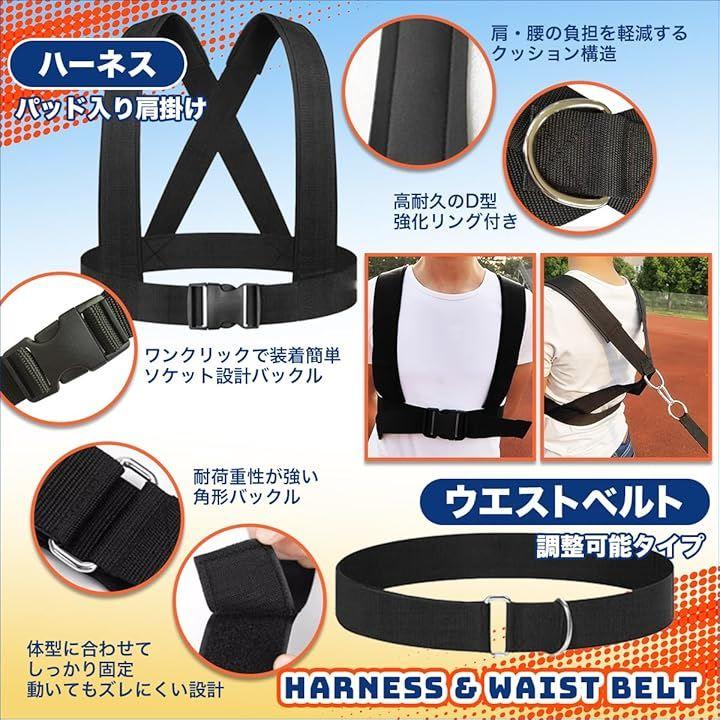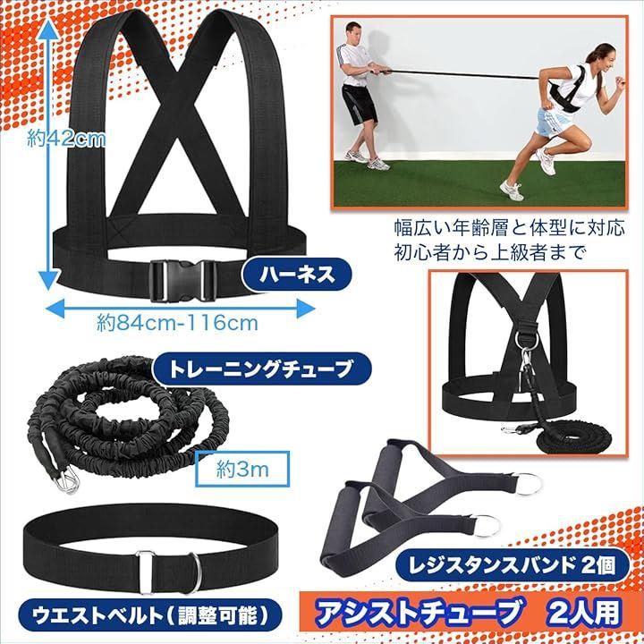 「セット内容(2)」ハーネス+トレーニングチューブ(長さ2m)+ウエストベルト+レジスタンスバンド2個
