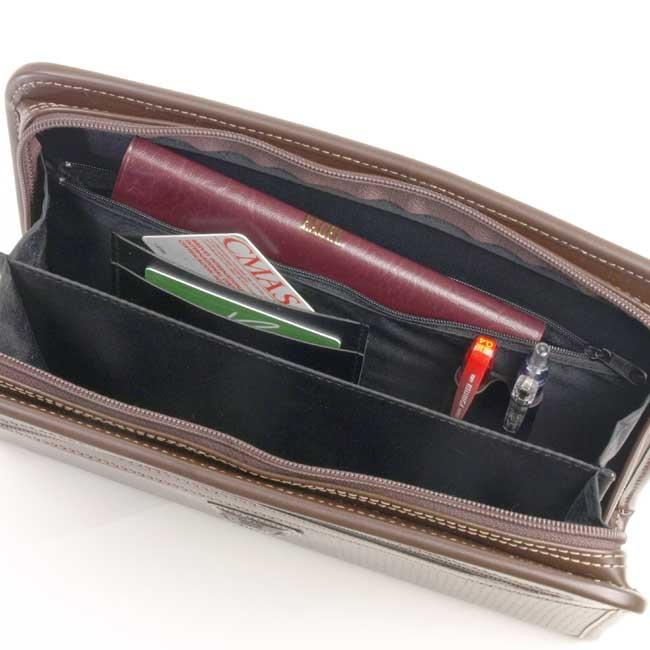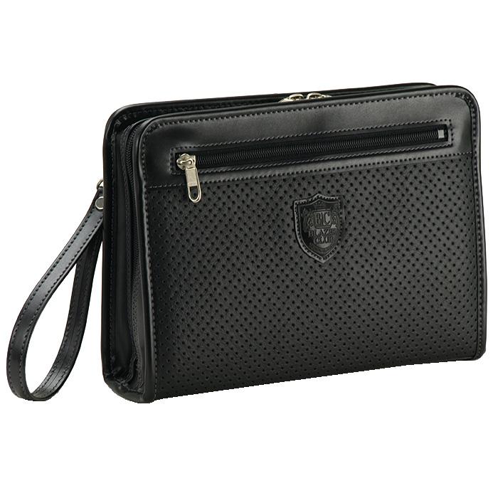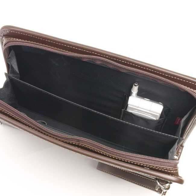 INFORMATION◆サイズ : 横幅26×高さ18×厚み7センチ◆素 材 : 合皮◆カラー : (01)クロ・(04)チョコ◆本体正面 : ファスナーポケット◆本体内部 : 中央仕切り、ファスナーポケット、携帯ポケット、ペン差し、カード入れ◆重 量 : 約380g◆生産国 : 日本