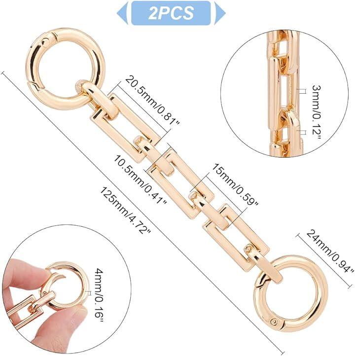 サイズ: 長さは約120mm、リング: 24x4mm、長方形: 20.5x10.5x3mm、15x10.5x3mmのバッグ延長チェーンが2つあります。