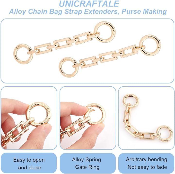商品説明: UNICRAFTALE 2個 バッグエクステンダーチェーン 合金財布チェーンストラップ 12cm ゴールデンクロスボディショルダーバッグストラップ 延長チェーン コネクタリング付き バッグストラップ交換アクセサリー 色:金色 数量:2個。