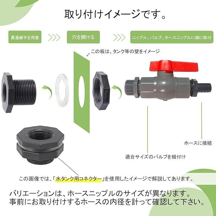 水タンクなどの隔壁継手コネクター(アダプター)の取り付けの際、必要になるのがこちらの「ボールバルブ ホースニップル ニップル」のセットになります。