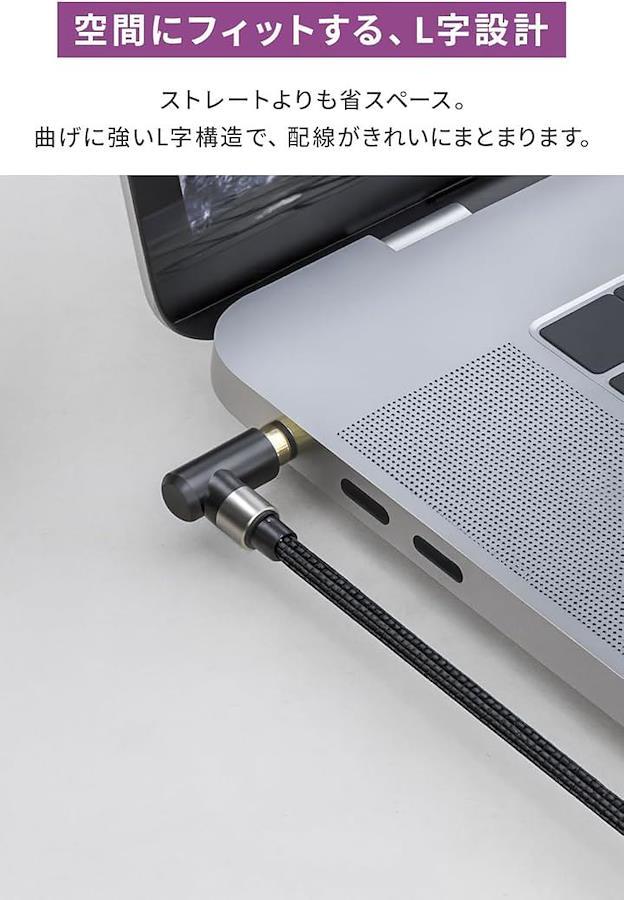 「断線しにくい片側L字型プラグ」省スペースで接続できる片側L字型デザイン。