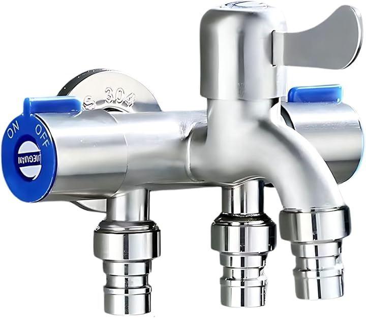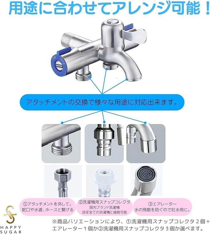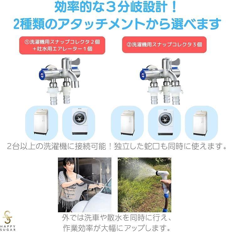 「多機能で効率的な3分岐設計」 一つの蛇口から3つの出水口があり、洗濯・散水・洗車など複数の用途を同時に行えます。
