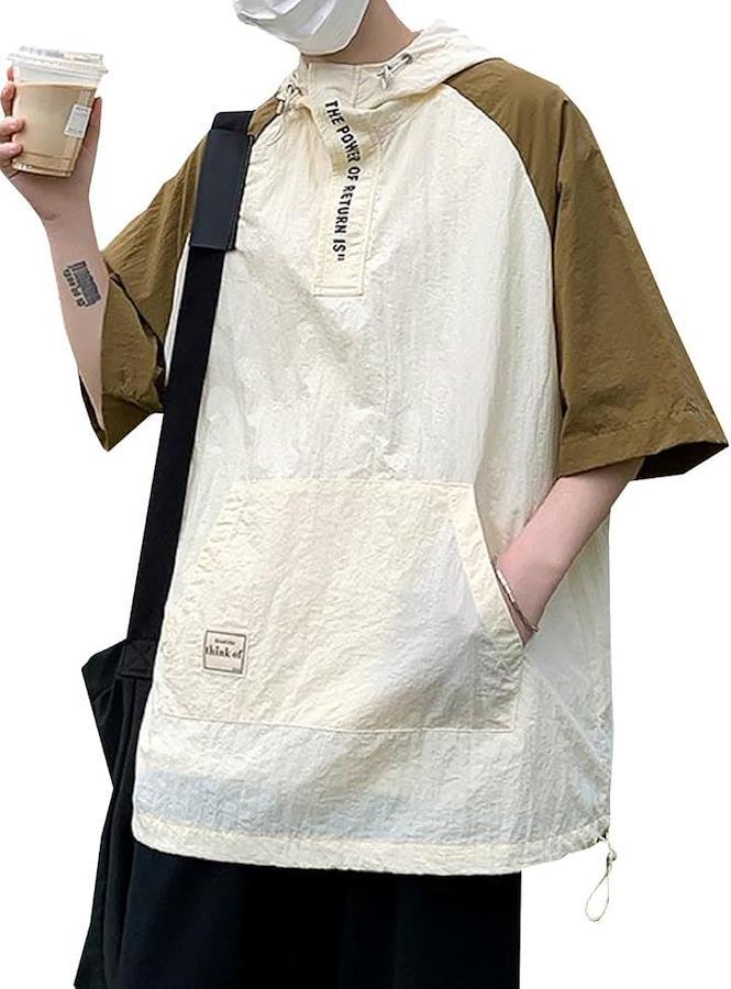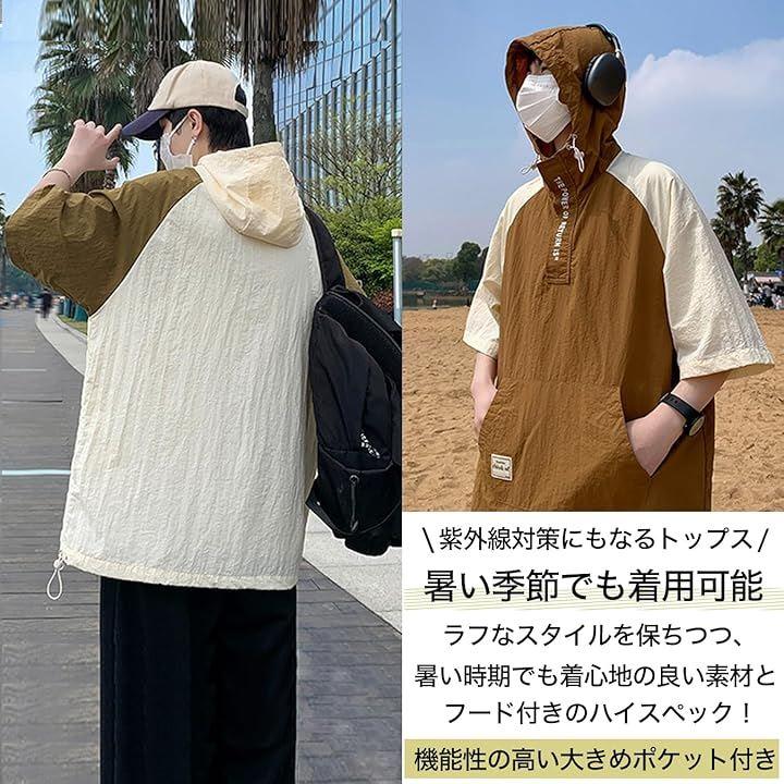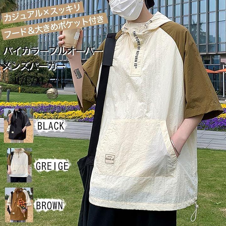 バイカラーの配色デザインが今っぽい雰囲気がおしゃれなプルオーバーパーカー。