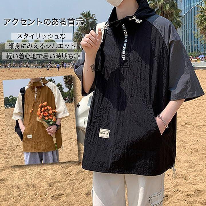 ハーフジップで首元が調整もできるから暑い夏も快適に着られて、ユニセックスなアイテムにもOK。