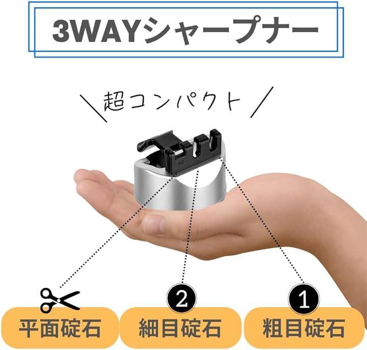 「3WAYシャープナー」3つのシャープナーが1つになった便利なシャープナーです。
