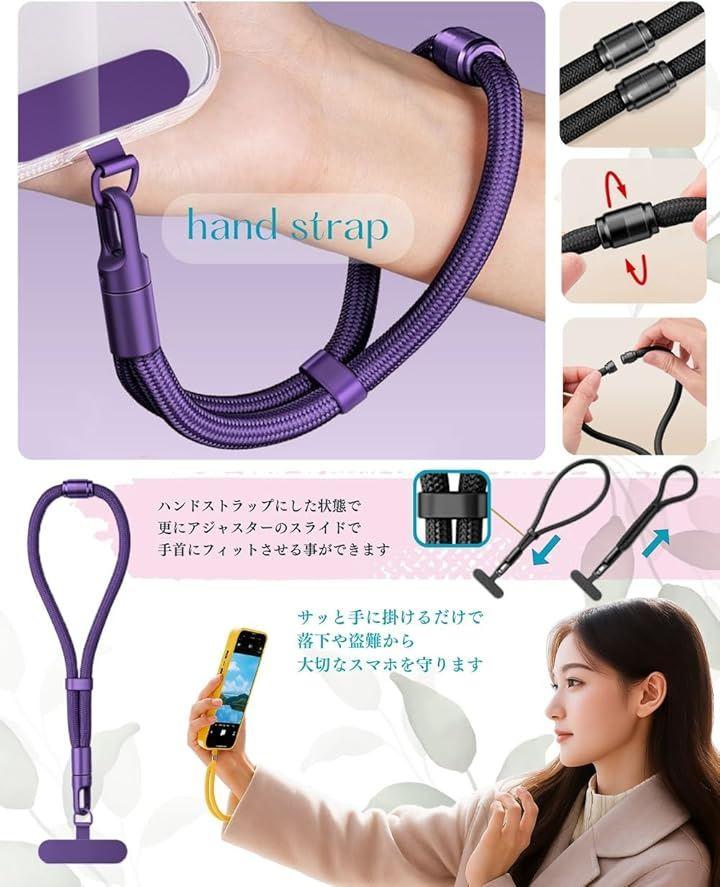 「自由自在な3WAYスマホストラップ」 ハンド・ネック・ショルダーの3通りに使い分けできる便利なスマートフォンストラップ。