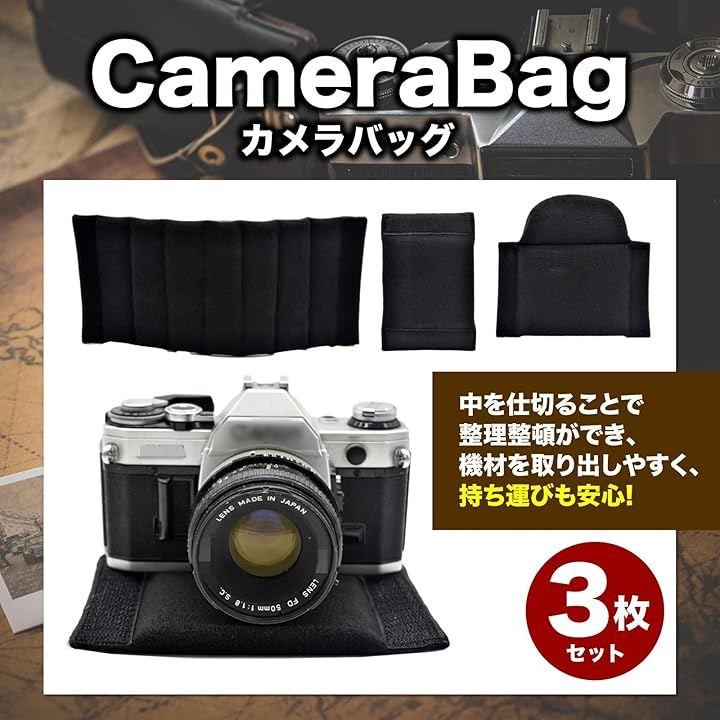 「仕切りで整理・収納力アップ」カメラバッグ 仕切りパッド 3枚セットは、一眼レフカメラやミラーレス、交換レンズ、充電器、メモリーカードなどをすっきり収納できる便利アイテム。