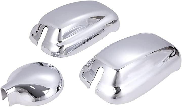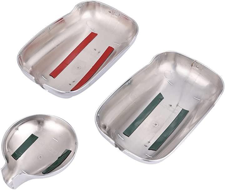 ・サイズ(約):縦283mmx横170mm(サイドミラーカバー左右) 144φ(アンダーミラーカバー) カラー:クロームメッキ 材質:ABS樹脂製 セット内容:メッキサイドミラーカバー左、メッキサイドミラーカバー右、 丸型アンダーミラーカバー3点セット