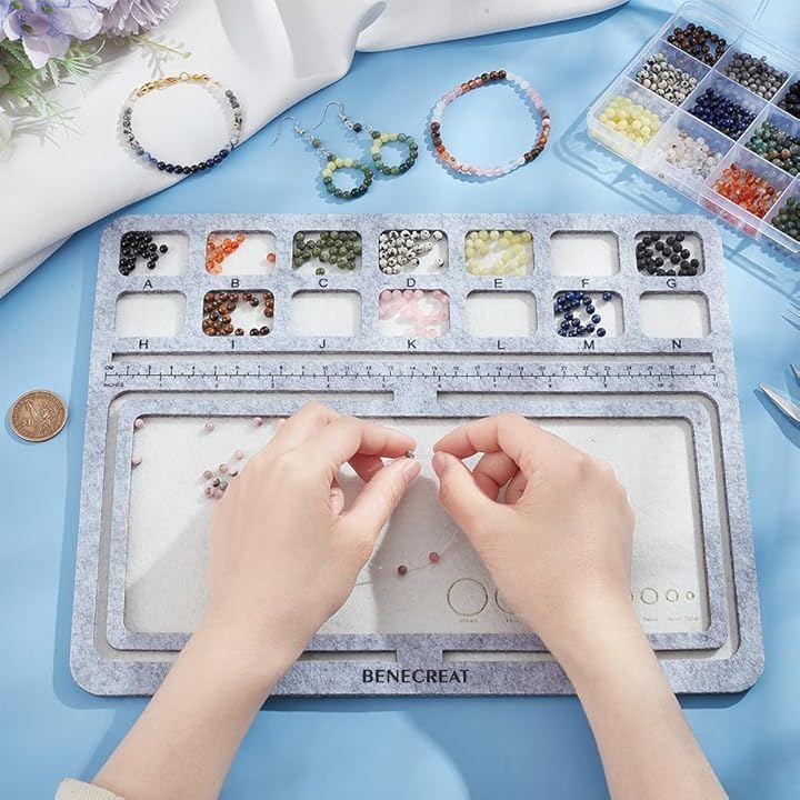 ハンドメイドジュエリーやアクセサリーに最適なこのフェルト製ビーズデザインボードは、ビーズの配置やデザインが簡単にできるようにデザインされています。