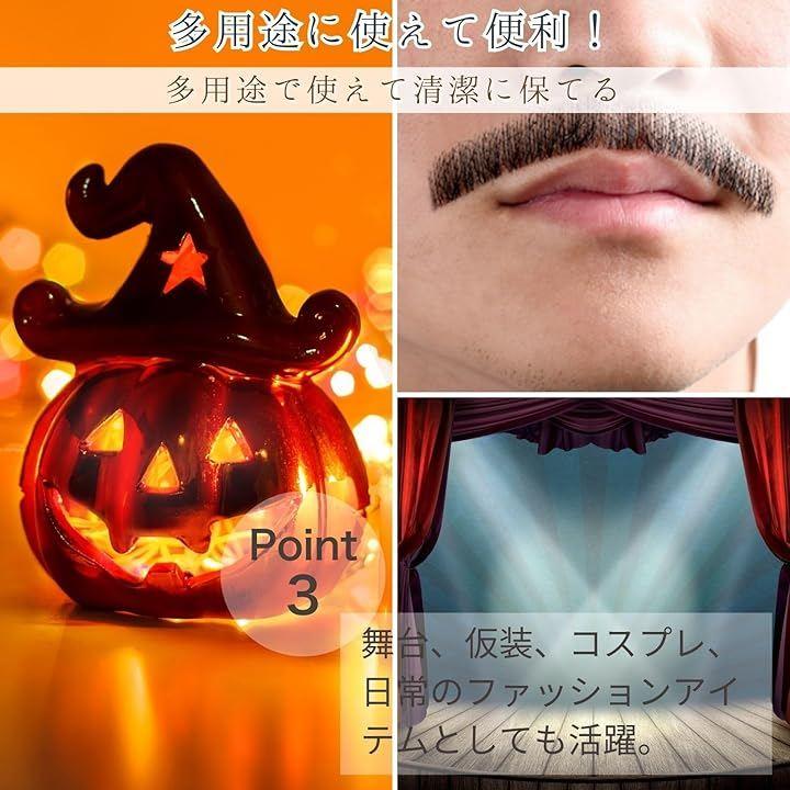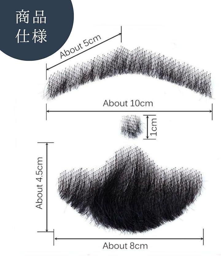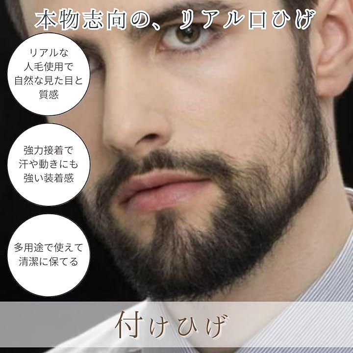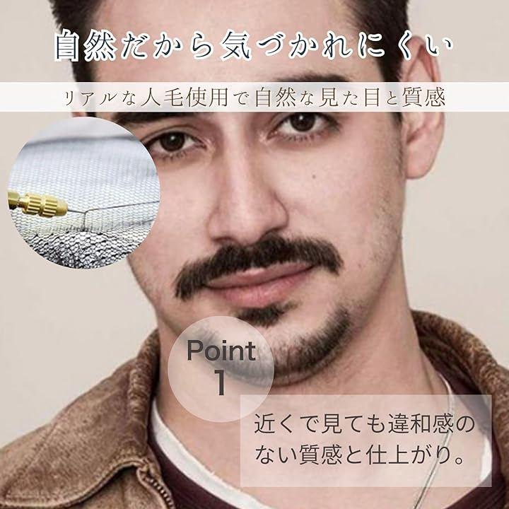 「リアルな人毛使用で自然な見た目と質感」一本一本手作業で編み込んだ人毛を使用し、実際の髭と区別がつかないほどの高い再現性を実現。