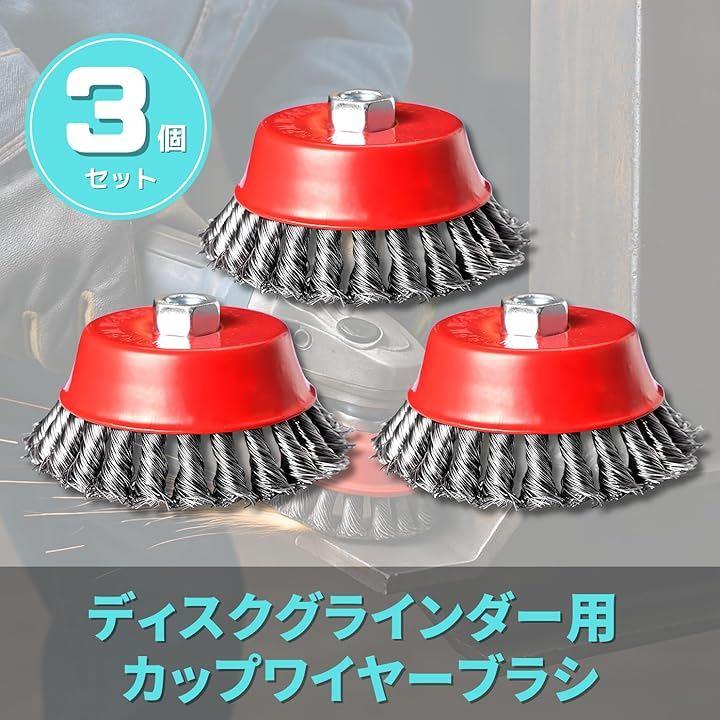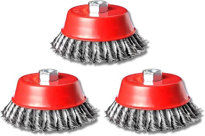 3-Piece Twisted Cup Wire Brush for Disc Grinders, Hex Shank, Rust Removal, Paint Stripping