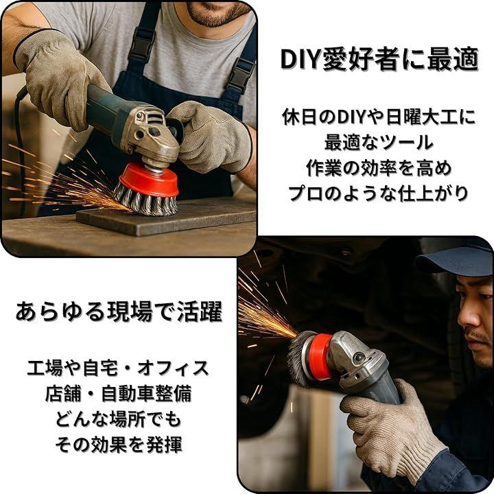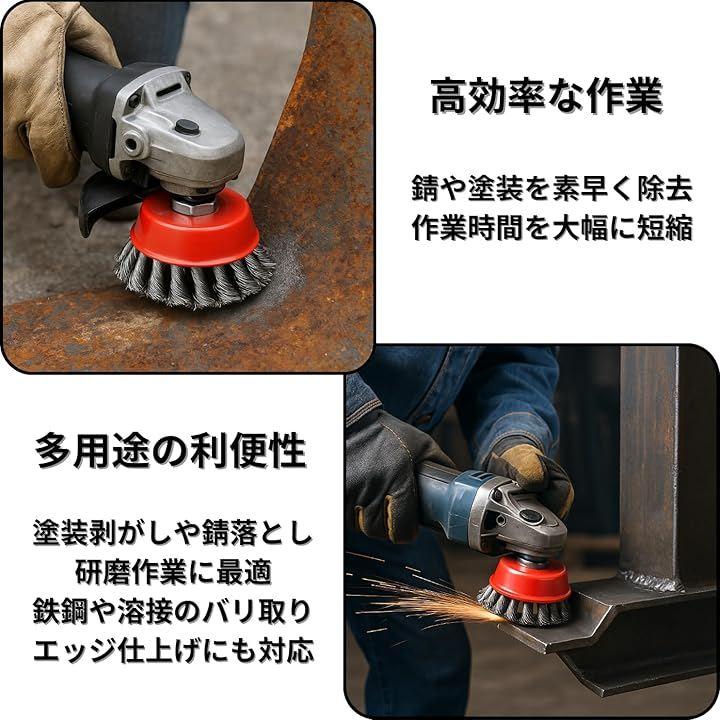 「高効率な作業」このディスクグラインダー用ワイヤーブラシセットは、錆や塗装を素早く除去し、作業時間を大幅に短縮します。