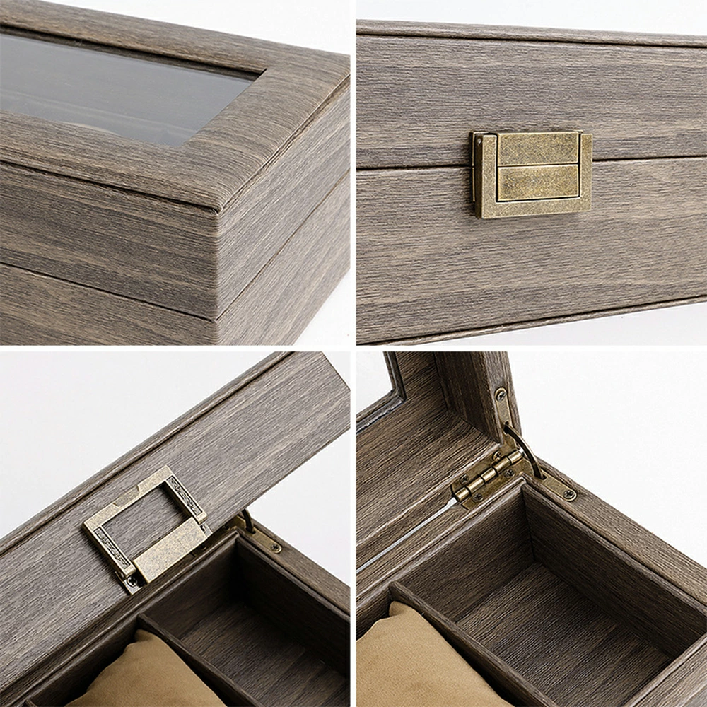 商品情報 製品情報 ●良質なフェイクレザーを使用したウッド調でレトロな時計ケース ●ほとんどの腕時計が収納できるコレクションケースです。 ●ネックレスやブレスレットなのでアクササリーも収納できるケース ●レトロ調鍵付 ●透明度の高い厚さ0.3cmのガラス仕様 ●1秒で元に戻る良質なフェザー素材のクッションがしっかりサポート ●横板取り外し可能 ●防塵仕様 ●3本用時計ケースサイズ:20.5×12×9cm 備考 おすすめ 人気 お得 タイムセール クーポン有 クーポンを取得する クーポンが使える店 ポイント 腕時計 収納ケース 3本 保管 ケース 木製 高級 1本 時計 ケース 3本 おすすめ コレクションケース 腕時計ケース