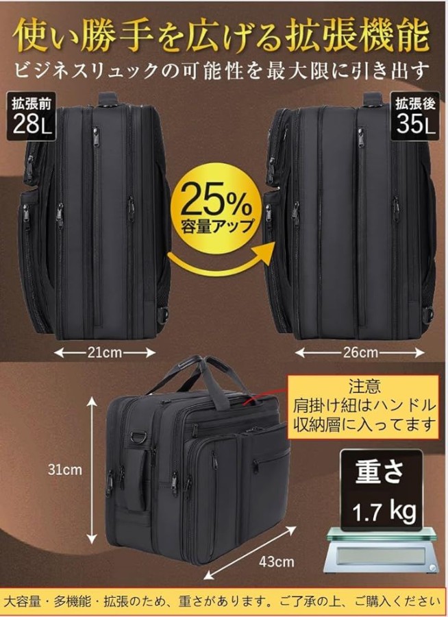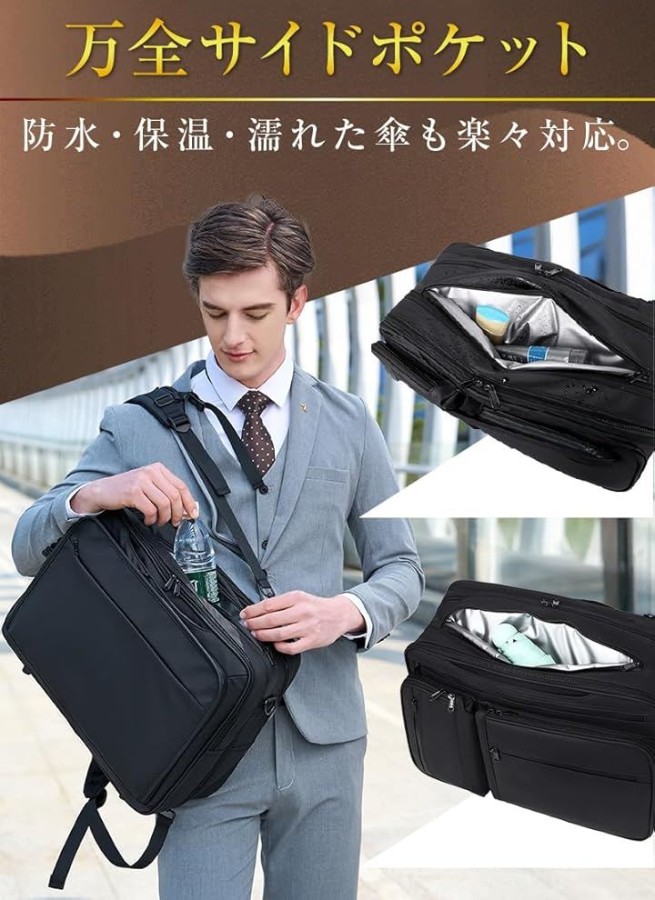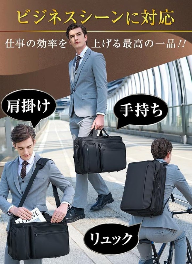・「3way」手提げ、リュック、ショルダーの3つのスタイルが選べる3wayビジネスバッグ。