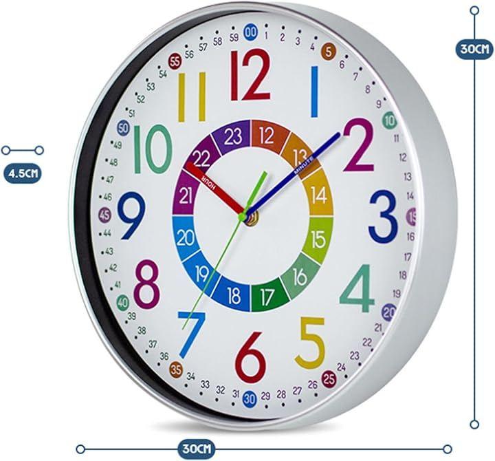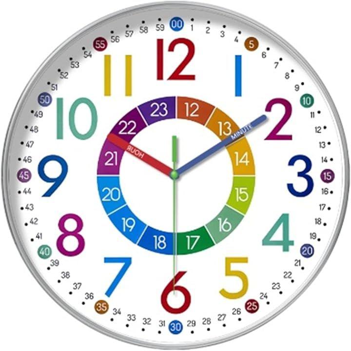 このカラフル教育用壁掛け時計は、お子様の時間学習をサポートする理想的なツールです。