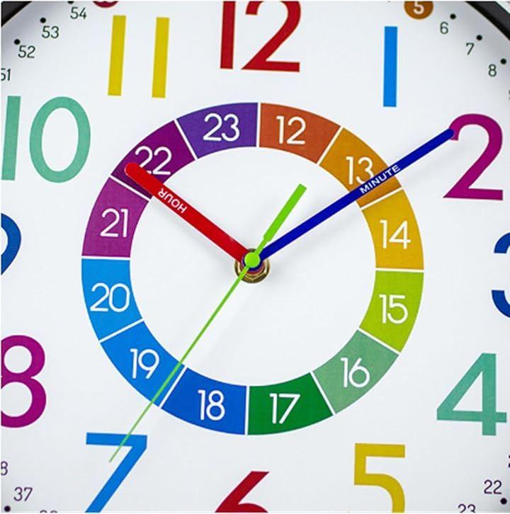教育設計: 子供の時間学習に最適な、見やすいカラフル数字と分数表示付きの教育用時計