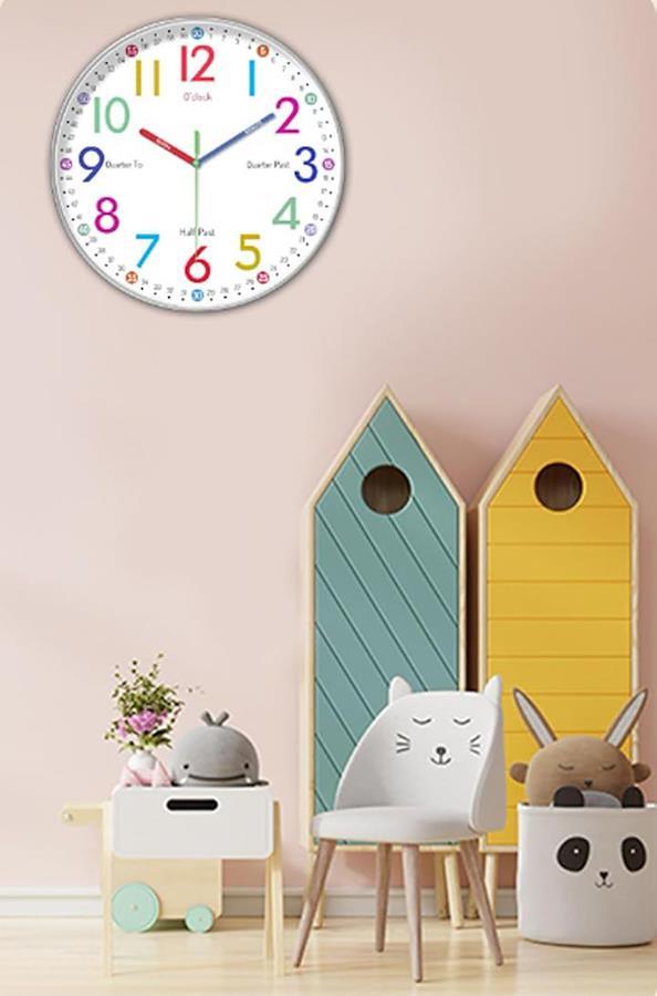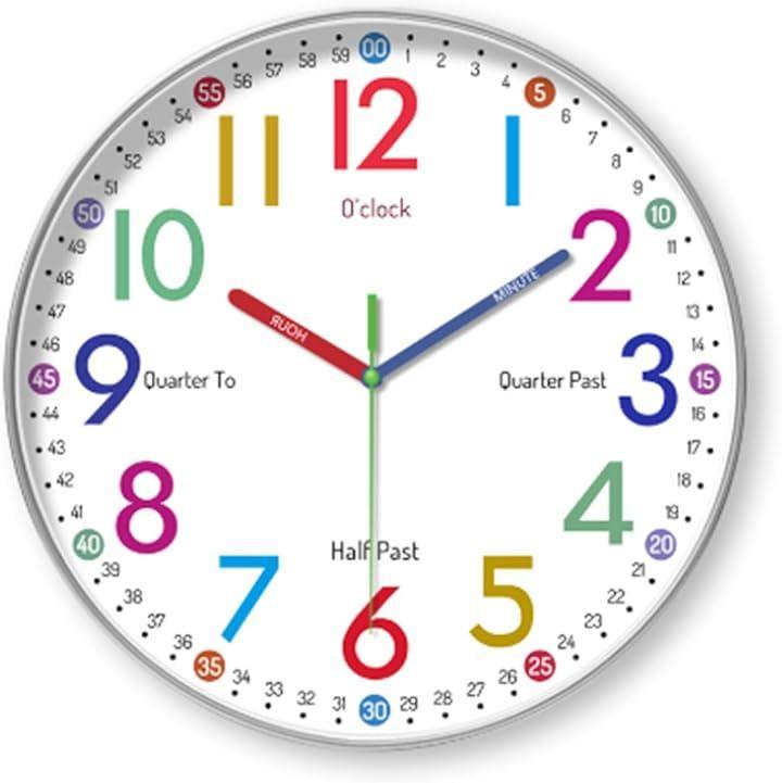このカラフル教育用壁掛け時計は、お子様の時間学習をサポートする理想的なツールです。
