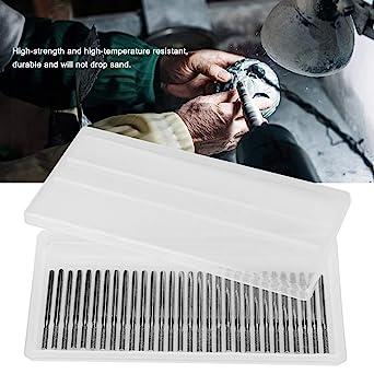 黒ニッケル処理により、硬度が大幅に向上し、彫刻の効率が向上します。CNCフライスハンドルバーはスキップせず、研削の安定性を保証します。高強度、高温耐性、耐久性があり、砂を落としません。ダイヤモンドの切断力を備えた細かい穴あけ用の円筒形状のフラットドリルビット。30個/セット、2.5ミリ/0.10インチの研削ヘッド、3ミリ/0.12インチのシャンク径、45ミリ/1.77インチの長さの150グリットのドリル用ビット。